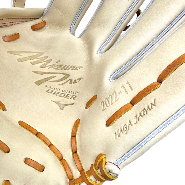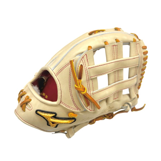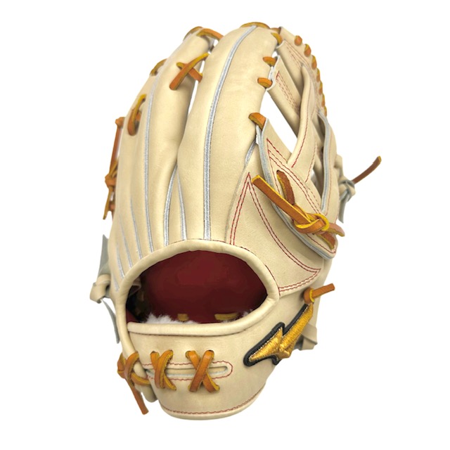 ミズノ(MIZUNO) BSSショップ限定 ミズノプロ 硬式グラブ スポコバオリジナル 品番:1AJGH88250 カラー:ブロンド(80) 素材:プレキシーキップレザー(天然皮革:牛革) 裏革カラー:レッド(62) サイズ:18N(基本モデルズバリ) ウェブ:クロス6 バックスタイル:ノーマルスタイル:AXI ステッチカラー:赤(5) 革紐カラー:シナモンコルク(591) ロゴ:ゴールド モデル:AXIモデル ポジション:外野手用 左右:右投用 付属品:専用袋付き 原産国:日本製
