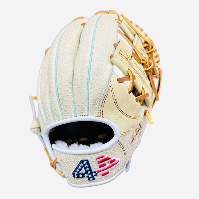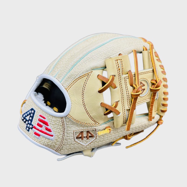 アメリカカスタムオーダーグラブNo.1ブランドがついに日本展開! 44(フォーティフォー) 2011年設立からわずか5年でNo.1ブランドになった超人気メーカー。遊び心溢れる多彩なデザインと日本向けに開発されたグラブ設計を携え、2020年冬に日本上陸! 特徴的な”44″総柄型押しレザーに、アメリカンな星条旗ロゴを搭載したモデル。