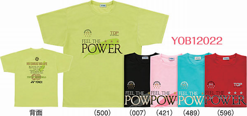 ヨネックス オリジナルTシャツ FEEL THE POWER 品番:YOB12022 カラー 007 ブラック 421 パウダーピンク サイズ:S・M・L 男女兼用サイズ ドライメッシュ:ポリエステル100% 原産国:中国製