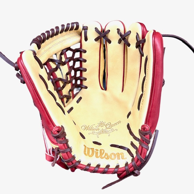 ウィルソン(Wilson)女子ソフトボール用グラブ Queen DAUL 品番:WBW101241 カラー:ブロンド×ブリック ポジション:ユーティリティ用(右投用) サイズ:12インチ 表革:プロストックレザーSG+スーパースキン 裏革:ライニングレザーSG 特別仕様:小指2本入れ対応 機能:アーチフィッター、バンドフィット調節、親指フィット構造、フラットバインディング 製造国:ベトナム製