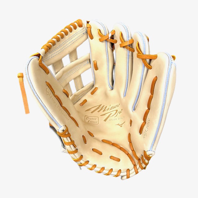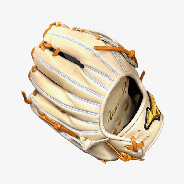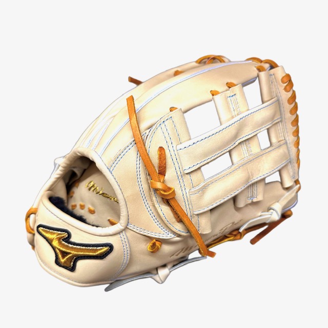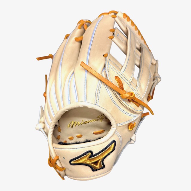 品番:1AJGH28027 カラー:80X(ブロンド) Xカラー:平裏にはMizunoPro刺繍入り 素材:受球面・背面:プレキシーキップレザー(天然皮革:牛革) サイズ:18N ポジション:外野手用(右投用)佐藤モデル 付属品:BSSショップ限定専用袋付 生産国:日本