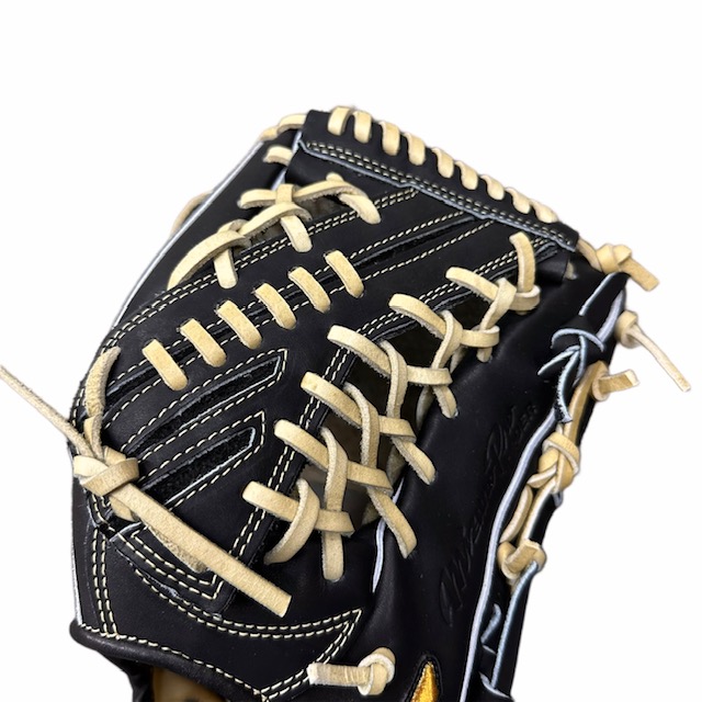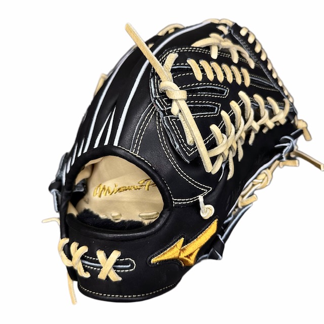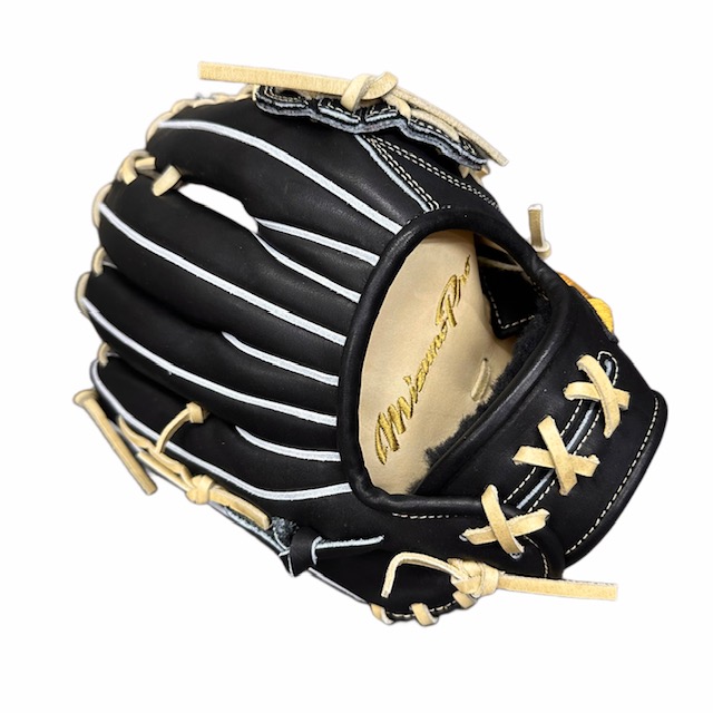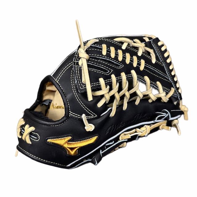 ミズノ(MIZUNO) BSSショップ限定 ミズノプロ 硬式グラブ スポコバオリジナル 品番:1AJGH70350 カラー:ブラック(09) 素材:プレキシーエリート(天然皮革:牛革) 裏革カラー:ブロンド(80) サイズ:18N(基本モデルズバリ) ウェブ:ショックアブソーバー24 バックスタイル:ノーマルスタイルAXI ステッチカラー:シャンパンゴールド(11) 革紐カラー:ブロンド(80) ロゴ:ゴールド モデル:AXIモデル ポジション:外野手用 左右:右投用 付属品:専用袋付き 原産国:日本製
