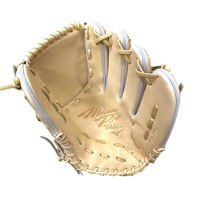 ミズノ(MIZUNO) BSSショップ限定 ミズノプロ 硬式グラブ スポコバオリジナル 品番:1AJGH70250 カラー:ブロンド(80) 素材:プレキシーキップレザー(天然皮革:牛革) 裏革カラー:ビターオレンジ(542) サイズ:13(基本モデルズバリ) ウェブ:タータンKM8 バックスタイル:KMフロウスタイル ステッチカラー:オレンジ(7) 革紐カラー:ブロンド(80) ロゴ:ゴールド モデル:前田健太モデル ポジション:投手用 左右:右投用 付属品:専用袋付き 原産国:日本製