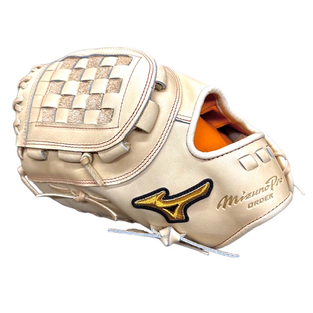 ミズノ(MIZUNO) BSSショップ限定 ミズノプロ 硬式グラブ スポコバオリジナル 品番:1AJFH70350 カラー:ブロンド(80) 素材:プレキシーエリート(天然皮革:牛革) 裏革カラー:ビターオレンジ(542) バックスタイル:ノーマルスタイル:5DNA ステッチカラー:オレンジ(7) 革紐カラー:ブロンド(80) ロゴ:ゴールド モデル:中田翔(巨人)モデル ポジション:一塁手用 左右:左投用 付属品:専用袋付き 原産国:日本製