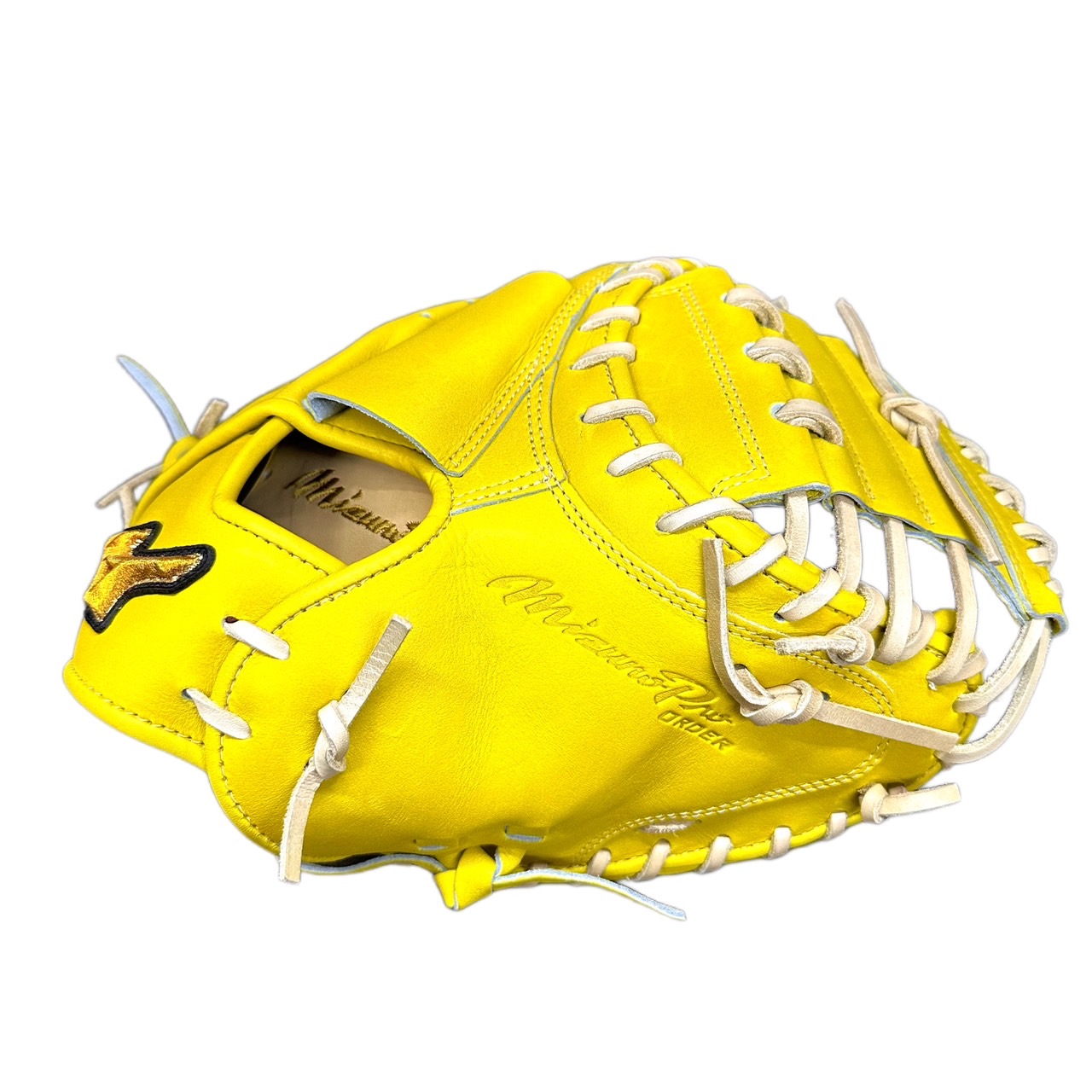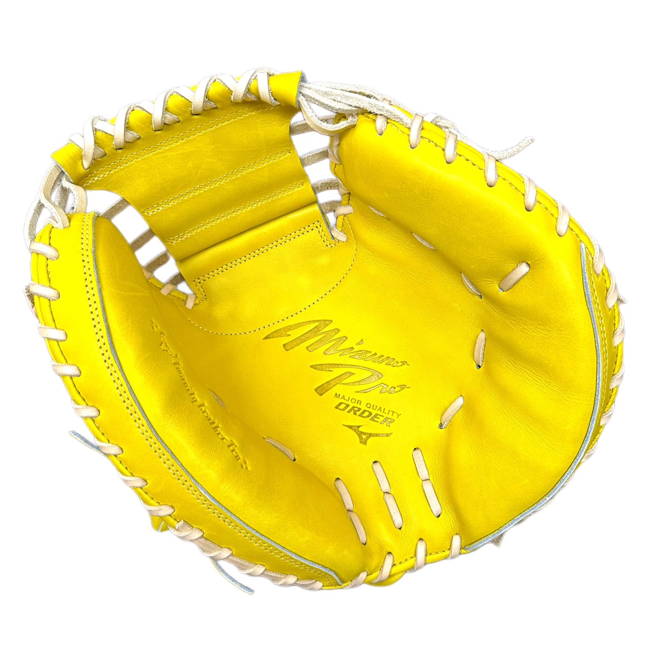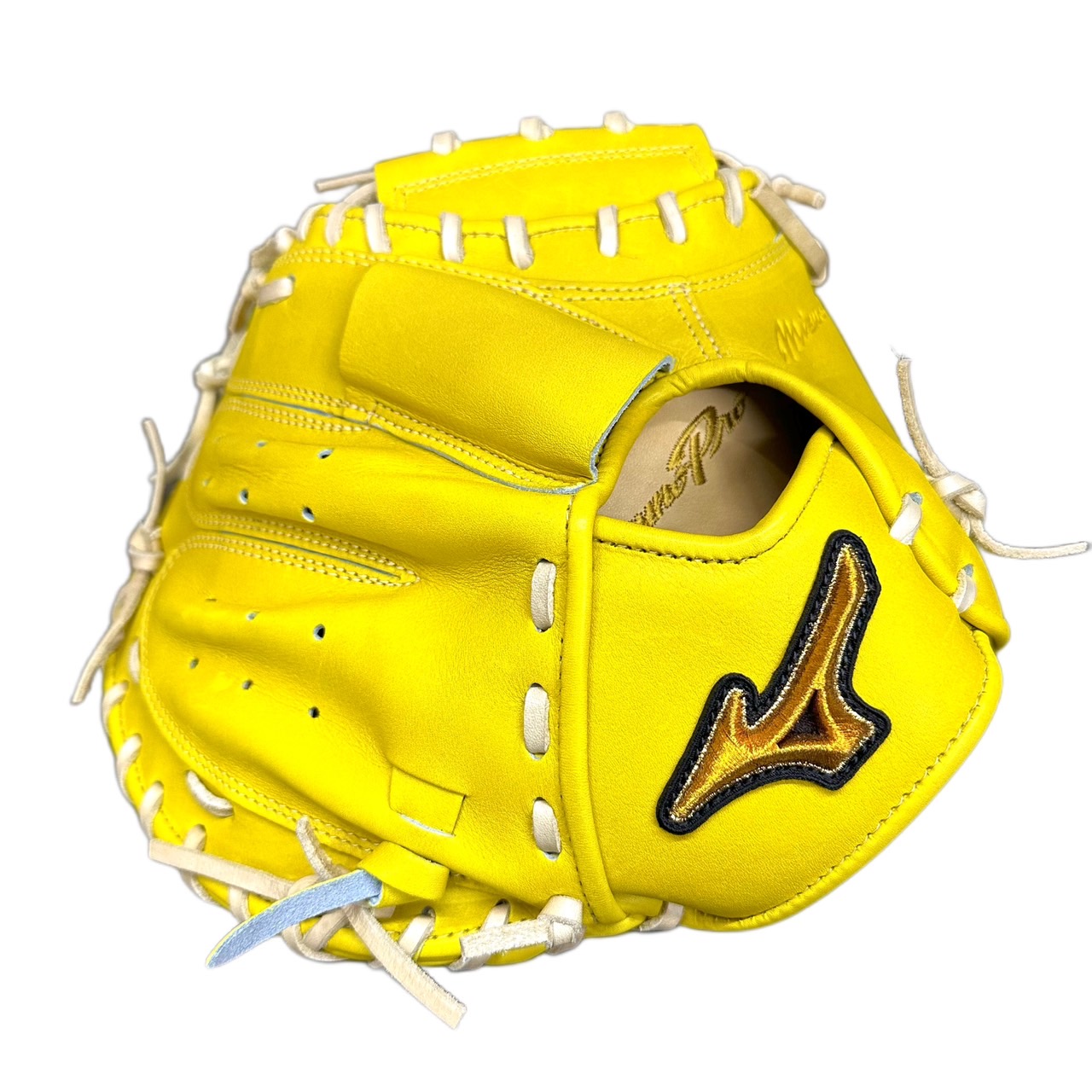 ミズノ(MIZUNO) BSSショップ限定 ミズノプロ 硬式グラブ スポコバオリジナル 品番:1AJCH88250 カラー:ナチュラルライム(40) 素材:ジマニティレザーテン(天然皮革:牛革) 裏革カラー:ブロンド(80) バックスタイル:CBバッグ 5mm大 ステッチカラー:シャンパンゴールド(11) 革紐カラー:ブロンド(80) ロゴ:ゴールド モデル:嶋基宏(東京ヤクルト)モデル ポジション:捕手用 左右:右投用 付属品:専用袋付き 原産国:日本製