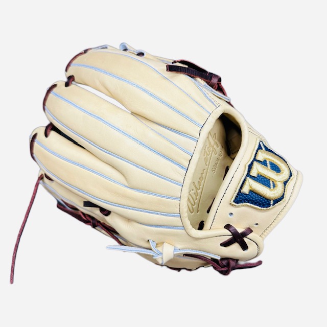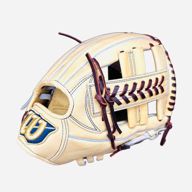 ウィルソン(Wilson)硬式グラブ STAFF DUAL 品番:WBW101503 カラー:ブロンド 表革:プレミアムキップレザー 裏革:共革(指裏/ディアソフト) サイズ:11.5インチ(D5型) ポジション:内野手用(右投用) はみ出し:切りはみ ウェブ:TV 詳細:小指2本入れ対応