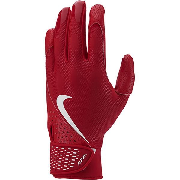 ナイキ(NIKE) バッティンググローブ 両手用 品番:BA1030 カラー:ユニバーシティーレッド/ホワイト(630) サイズ S(手囲い:19-19.5cm/手の長さ:18-18.5cm) M(手囲い:20.5-21cm/手の長さ:18.5-19cm) L(手囲い:22-22.5cm/手の長さ:19-19.5cm) 素材:ポリエステル・ポリウレタン・ナイロン 生産国:インドネシア製