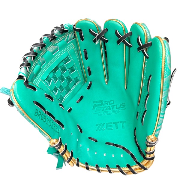 ゼット(ZETT) プロステイタス 軟式グラブ 内野手 源田型 限定オールスターモデル 品番:BRGB30356A カラー:4213(エメラルドグリーン×シルバー) 素材:天然皮革製、(表)プロステイタスRレザー、(平裏)プロステイタスRレザー ポジション:内野手用(右投げ用) サイズ:4 商品説明:スターラメウェルダーラベル、ダイヤモンドショップ限定 付属品:専用袋付き 原産国:ベトナム製