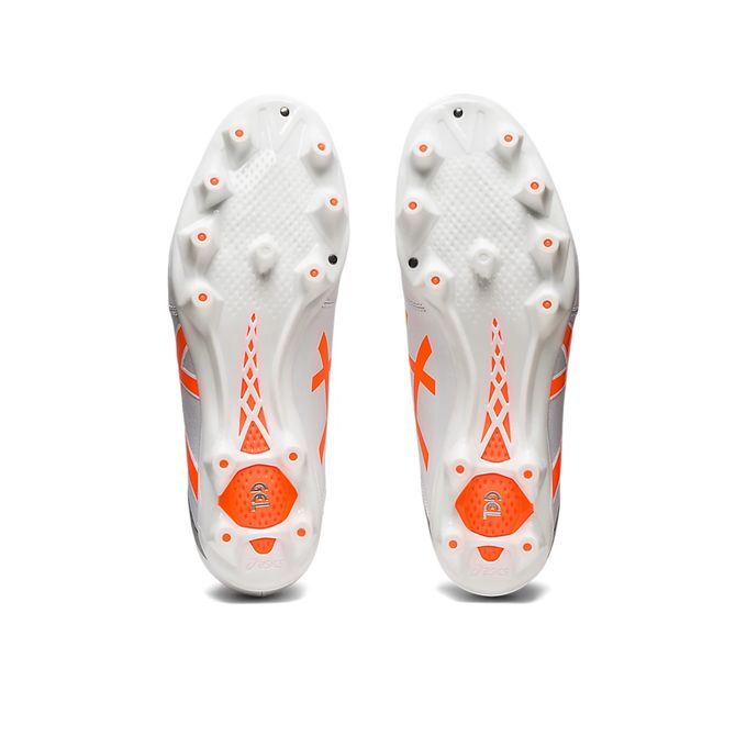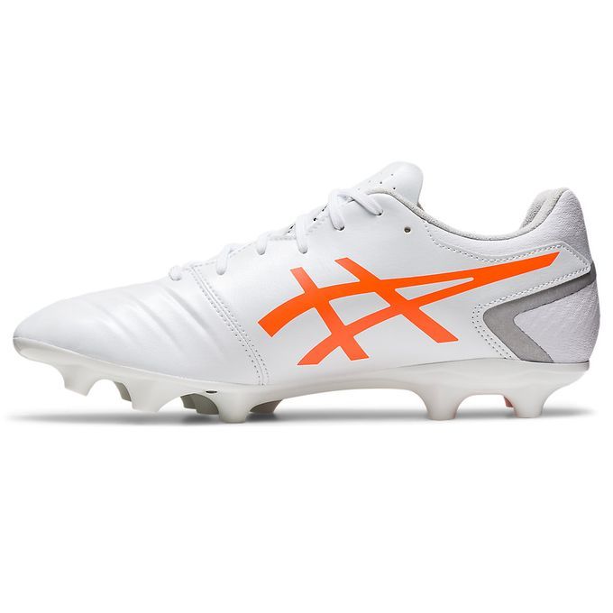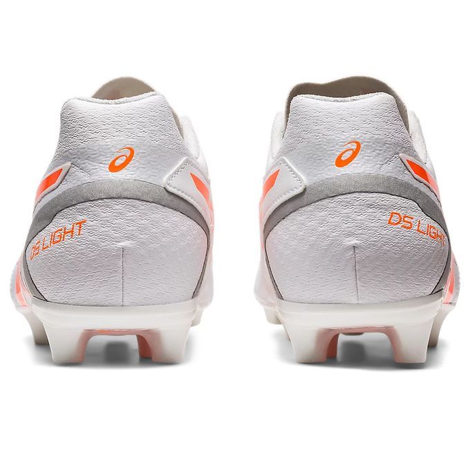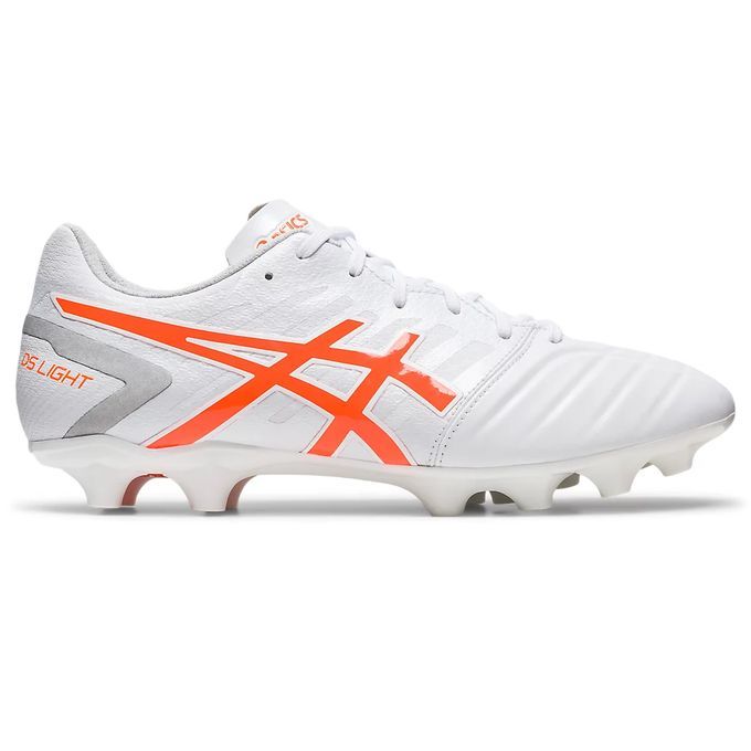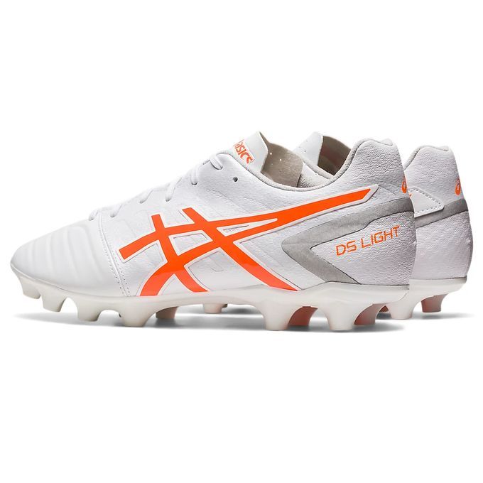 アシックス(asics) サッカースパイク DS LIGHT CLUB+ 品番:1103A073 カラー:ホワイト×ショッキングオレンジ(103) サイズ:24.0~29.0cm 足幅:ワイドラスト 重量:片足/約237g(27.0cm) 素材 アッパー/人工皮革(合成皮革) アウター/合成底(ウレタン) インナーソール/合成樹脂(取替式) 特長 適合する別売中敷/1103A029、1103A055 対応グラウンド/土、天然芝、人工芝 原産国:ベトナム