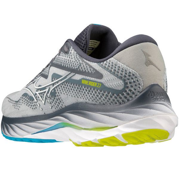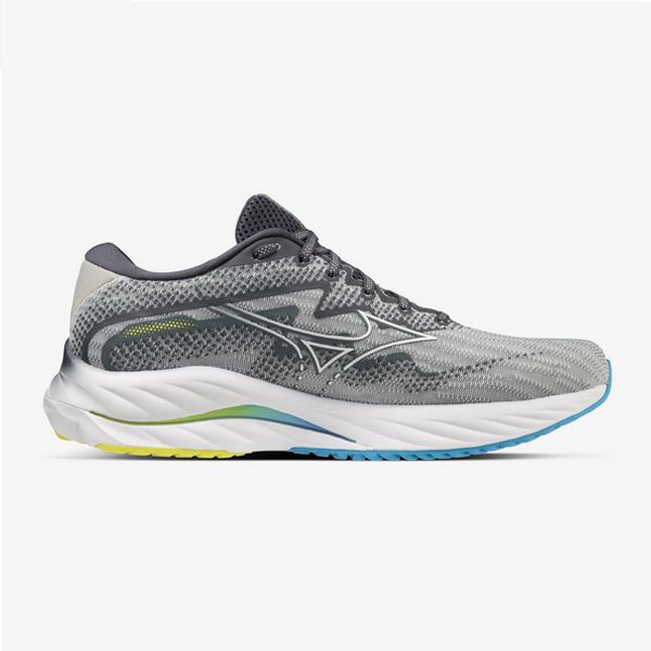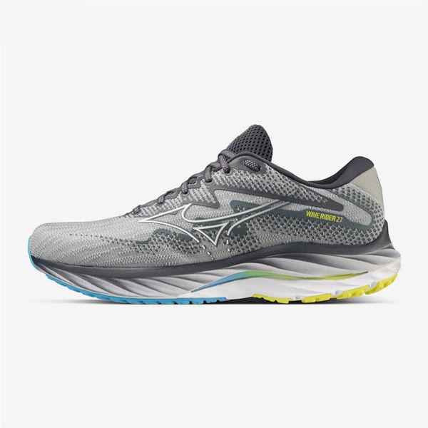 ミズノ(MIZUNO) ランニングシューズ ウエーブライダー27 品番:J1GC230301 カラー:01:グレー×ホワイト×ブルー サイズ:24.5~29.0、30.0cm 素材 甲材:合成繊維・人工皮革 底材:合成底 質量:約280g(27.0cm片方) インソール:プレミアムインソール(取り外し可) ウィズ:2E相当の方向け 機能・特徴 MIZUNO WAVE(ミズノウエーブ) クッション性と安定性を両立する、ミズノシューズの基幹機能 MIZUNO Enerzy 柔らかさと反発性に優れたミッドソール素材 X10(エックステン) 耐久性に優れたアウトソール素材 生産国:ベトナム
