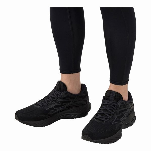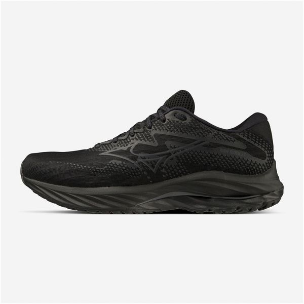 ミズノ(MIZUNO) ランニングシューズ ウエーブライダー27 SW 品番:J1GC230403 カラー:03:ブラック×ブラック サイズ:24.5~29.0、30.0cm 素材 甲材:合成繊維・人工皮革 底材:合成底 質量:約280g(27.0cm片方) インソール:プレミアムインソール(取り外し可) ウィズ:4E相当の方向け 機能・特徴 MIZUNO WAVE(ミズノウエーブ) クッション性と安定性を両立する、ミズノシューズの基幹機能 MIZUNO Enerzy 柔らかさと反発性に優れたミッドソール素材 X10(エックステン) 耐久性に優れたアウトソール素材 生産国:ベトナム