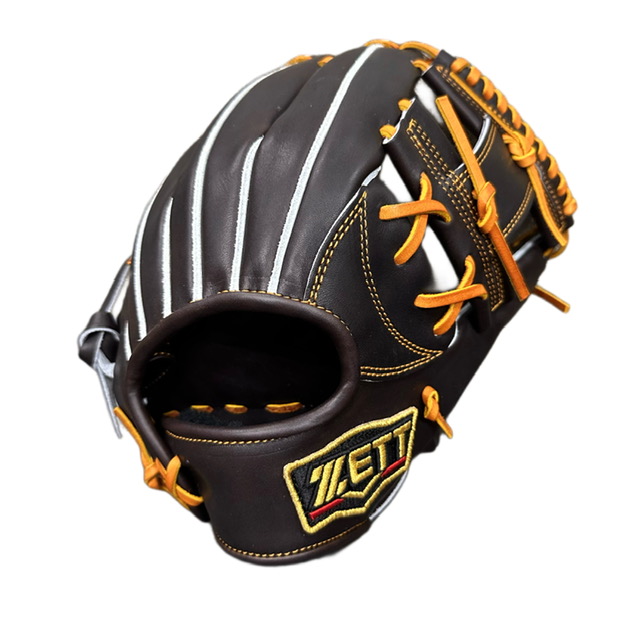 品番:BPROG766 カラー:3736(ブラウン×オークブラウン) 素材:天然皮革製、(表)国産牛レザー、(平裏)国産牛レザー ポジション:内野手用 モデル:今宮モデル サイズ:4 左右:右投用 付属品:専用グラブ袋付き 原産国:日本製