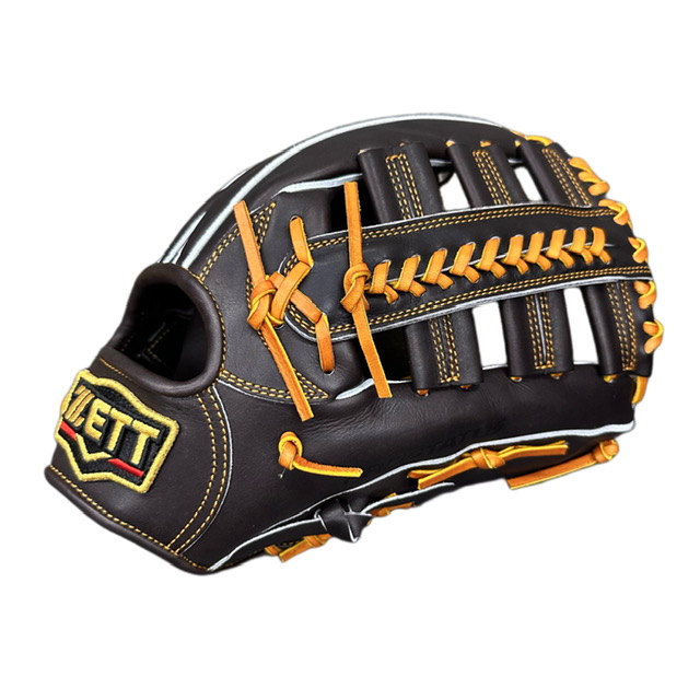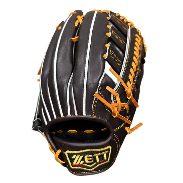 品番:BPROG778 カラー:3736(ブラウン×オークブラウン) 素材:天然皮革製、(表)国産牛レザー、(平裏)国産牛レザー ポジション:外野手用 サイズ:9 左右:右投用 付属品:専用グラブ袋付き 原産国:日本製