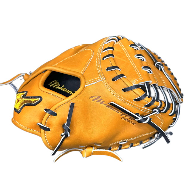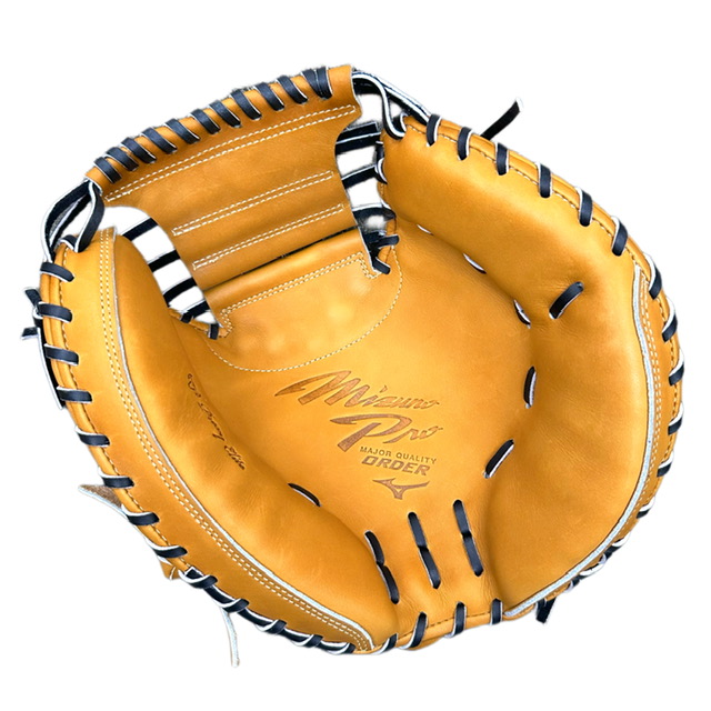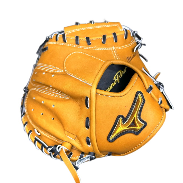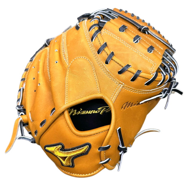ミズノ(MIZUNO) BSSショップ限定 ミズノプロ 硬式グラブ スポコバオリジナル 品番:1AJCH70350 カラー:USAコルク(59) 素材:プレキシーエリート(天然皮革:牛革) 裏革カラー:ブラック(09) バックスタイル:CBバッグ 5mm大 ステッチカラー:シャンパンゴールド(11) 革紐カラー:ブラック(1) ロゴ:ゴールド モデル:嶋基宏(東京ヤクルト)モデル ポジション:捕手用 左右:右投用 付属品:専用袋付き 原産国:日本製