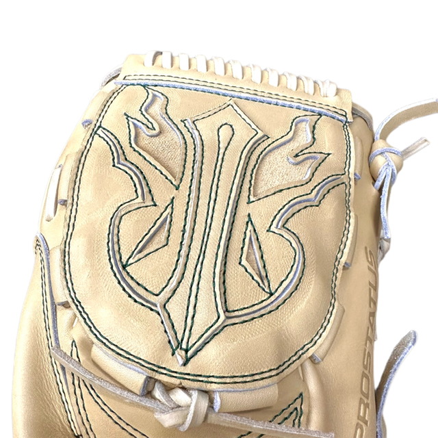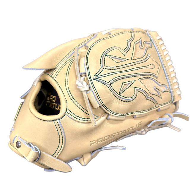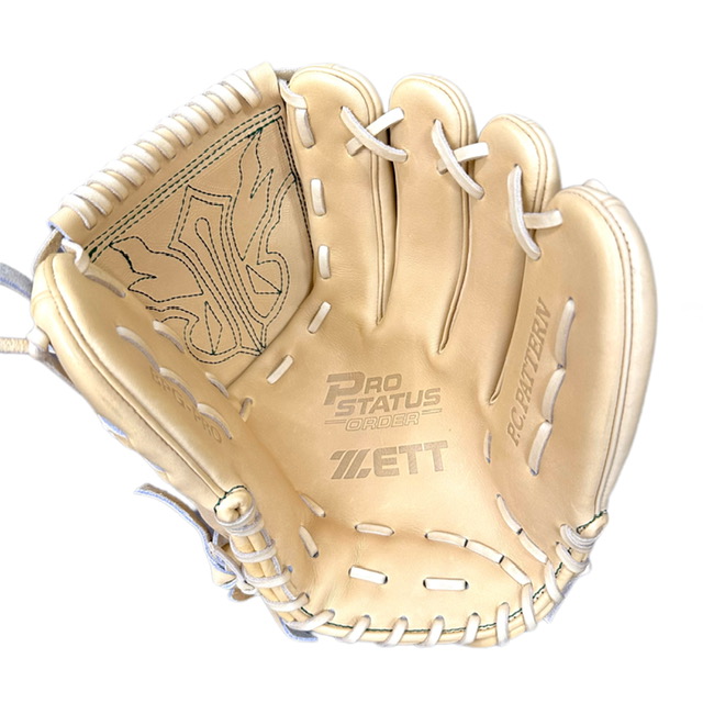 ゼット(ZETT) プロステイタス 硬式オーダーグラブ スポコバオリジナル 品番:BPGPRO カラー:パステルブラウン 素材:(表)プロステイタスレザー、(平裏)ステア サイズ:7(10mmダウン) ウェブ:フラットカブト 内芯:Dブーメランコアーパッド 内芯硬さ:硬く 内芯暑さ:薄く バックスタイル:スタンダードバック ステッチカラー:グリーン 革紐カラー:パステルブラウン ハミダシ:玉ハミ/パステルブラウン ヘリ革:パステルブラウン ラベル:ウェルダーラベル バンド裏ムートン:ムートンなし モデル:701型 ポジション:投手用 左右:右投用 付属品:専用袋付き 原産国:日本製