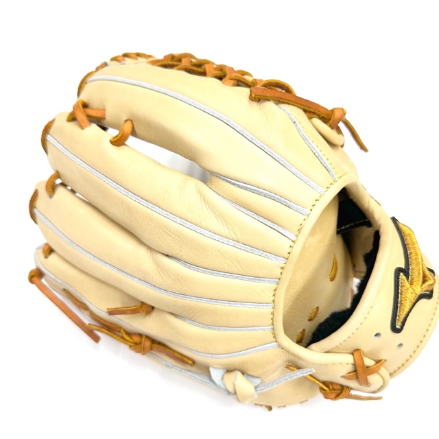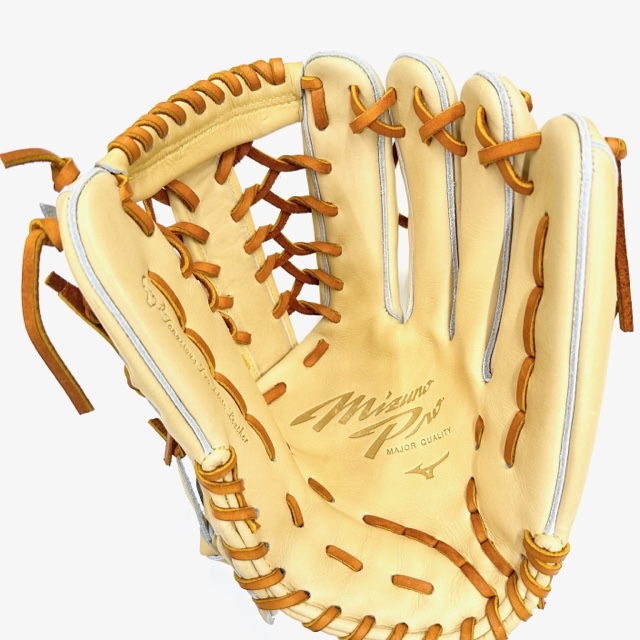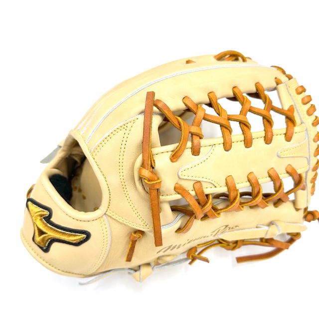 ミズノ(MIZUNO)ミズノプロ 硬式グラブ 外野手用 品番:1AJGH10807 カラー:80(ブロンド) 素材:テネイシャスプロエリートレザー(天然皮革・牛革) サイズ:18N ポジション:外野手用 左右:右投用 付属品:専用袋付き 原産国:中国製
