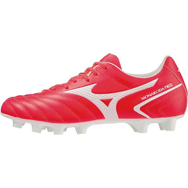 ミズノ(MIZUNO) サッカースパイク モナルシーダ ネオ 2 セレクト 品番:P1GA232564 カラー:64:フェアリーコーラル×ホワイト サイズ:24.5~29.0 素材 甲材:人工皮革 底材:合成底 インソール:ゼログライドライトカップインソール 取り外し可 質量:約225g(27.0cm片方) 足幅:3E相当 用途・目的:天然芝/土/人工芝のグランド用 生産国:カンボジア製