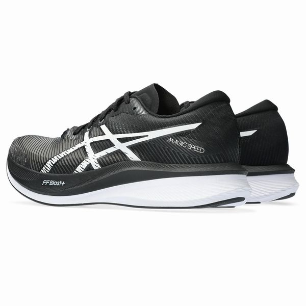 アシックス(asics) ランニングシューズ マジックスピード3 ワイド 品番:1011B704 カラー:BLACK/WHITE(001) サイズ:24.5~29.0cm 素材 アッパー:合成繊維・合成樹脂 アウトソール:ゴム底 インナーソール:合成樹脂(EVA)/固定式 足幅:WIDE 機能・特徴 MAGIC SPEEDシリーズが、前作よりもやわらかく、反発性も向上してアップデート。 フルレングスのカーボンプレートが、着地から蹴り出しにかけて足の動きを安定させつつ、効果的に身体を前方方向へ推進させる効果を発揮します。 ミッドソールには上層部・下層部ともにFF BLAST PLUSを採用することで、クッション性・反発性が向上し、より弾むような走り心地を提供。 アウターソールかかと部ラバーの接地面積を広げることで安定性の向上も実現しました。 生産国:ベトナム