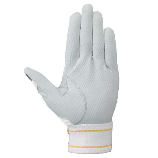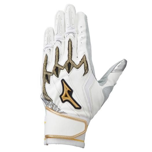 ミズノ(MIZUNO) ミズノプロ 手袋 両手用 シリコンパワーアークLI 品番:1EJEA51901 カラー:01:ホワイト×シルバー×ゴールド(掌部:ホワイト) サイズ:22~27cm 素材 平側素材:羊革(型押し) 甲側素材:合成皮革、合成繊維 機能・特徴 シリコンパワーアークライン(23年限定ラメ入りシリコーン搭載) ダイヤエンボスシープレザー(掌部) パワーアーク専用指先独自縫製 パワーアーク専用ワイドロングベルト(手首ベルト部) デュアルテンションベルト(手首部) 原産国:ベトナム製、フィリピン製