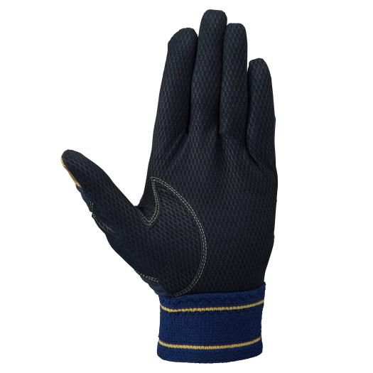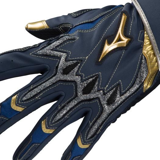 ミズノ(MIZUNO) ミズノプロ 手袋 両手用 シリコンパワーアークLI 品番:1EJEA51914 カラー:14:ネイビー×ゴールド×シルバー(掌部:ネイビー) サイズ:22~27cm 素材 平側素材:羊革(型押し) 甲側素材:合成皮革、合成繊維 機能・特徴 シリコンパワーアークライン(23年限定ラメ入りシリコーン搭載) ダイヤエンボスシープレザー(掌部) パワーアーク専用指先独自縫製 パワーアーク専用ワイドロングベルト(手首ベルト部) デュアルテンションベルト(手首部) 原産国:ベトナム製、フィリピン製