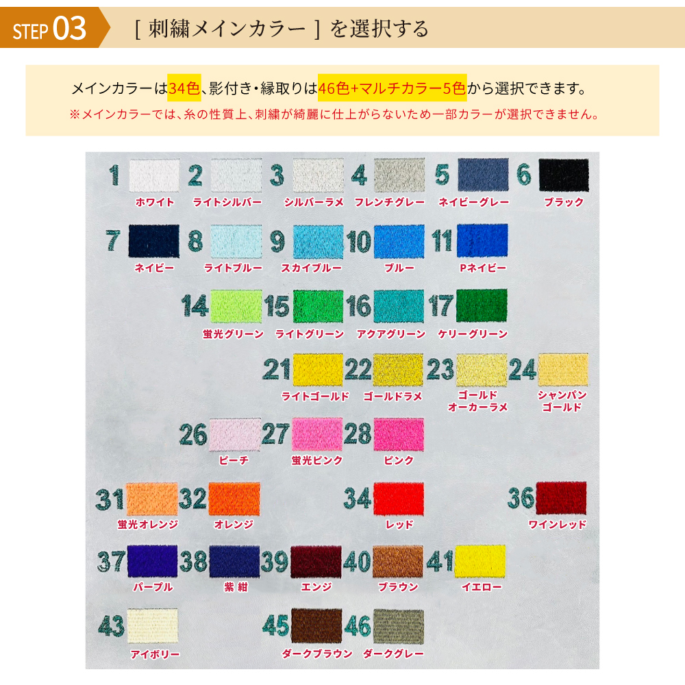 【※注意6※刺繍カラー】 メインカラーに、一部刺繍糸がお選びいただけませんのでご了承くださいませ。