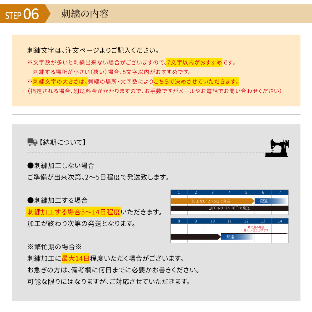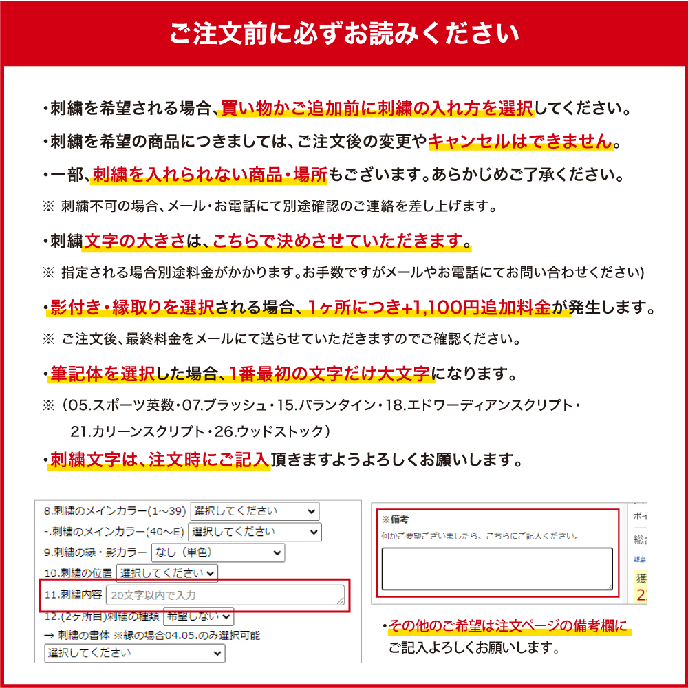 【※注意2※文字】 刺繍文字の大きさは、こちらで決めさせていただきます。(指定される場合別途料金がかかりますので、お手数ですがメールやTEL等でお問い合わせください)