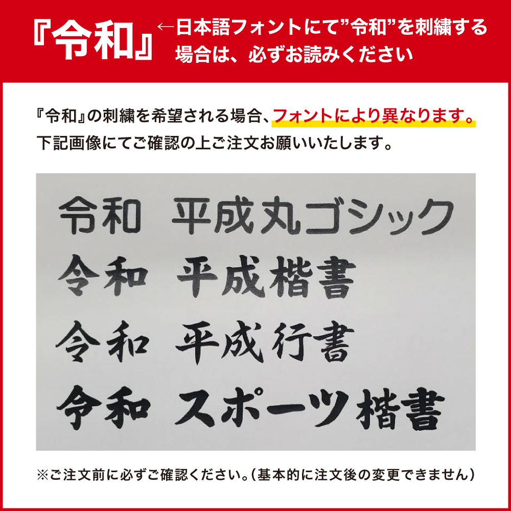 【※注意4※文字】 『令和』の刺繍を希望される場合、フォントにより異なります。画像にてご確認の上ご注文お願いいたします。