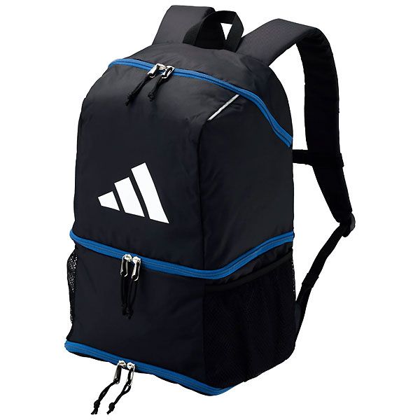 アディダス(adidas) ボール用デイパック 24L 品番:ADP40BKB カラー:ブラック×ブルー(BKB) サイズ:横30cm×縦44cm×奥行20cm 素材:ポリエステル 容量:24L 生産国:ベトナム製