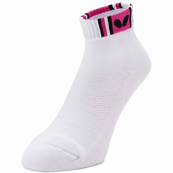 バタフライ(butterfly) 卓球 ソックス フルグレス・ソックス 品番:92380 カラー:ホワイト/ロゼ(921) サイズ:S/19.0-21.5cm、M/22.0-24.5cm、L/25.0‐27.0cm 素材:綿、アクリル、その他 特徴:抗菌防臭 原産国:日本