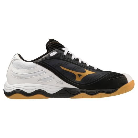 ミズノ(MIZUNO) 卓球シューズ ウエーブメダル7 品番:81GA231502 カラー:02:ホワイト×ブラック×ゴールド サイズ:22.5~28.5cm 素材 甲材:人工皮革、合成繊維 底材:合成底 質量:約270g(26.0cm片方) インソール:カップインソール(取り外し可) シューズ幅:2E相当の方向け 原産国:ベトナム製
