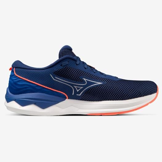 ミズノ(MIZUNO) ランニングシューズ ウエーブリボルト3 品番:J1GC238153 カラー:53:ネイビー×ホワイト×コーラル サイズ:25.0~29.0cm 素材 甲材:合成繊維 底材:合成底 質量:約260g(27.0cm片方) インソール:ノーマルインソール(取り外し可) シューズ幅:2E相当の方向け 原産国:ベトナム製