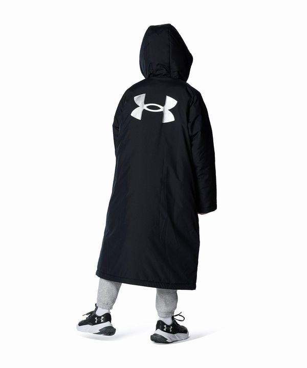 中綿入りだから保温性は万全。さらに軽く柔らかな着心地で動きやすさも確保。 UA独自の撥水加工「ストーム」により、雨や雪もしっかりプロテクト。 冬季トレーニング時のアウターとして、また、ワークアウト中の休憩中など幅広い用途で活躍する。