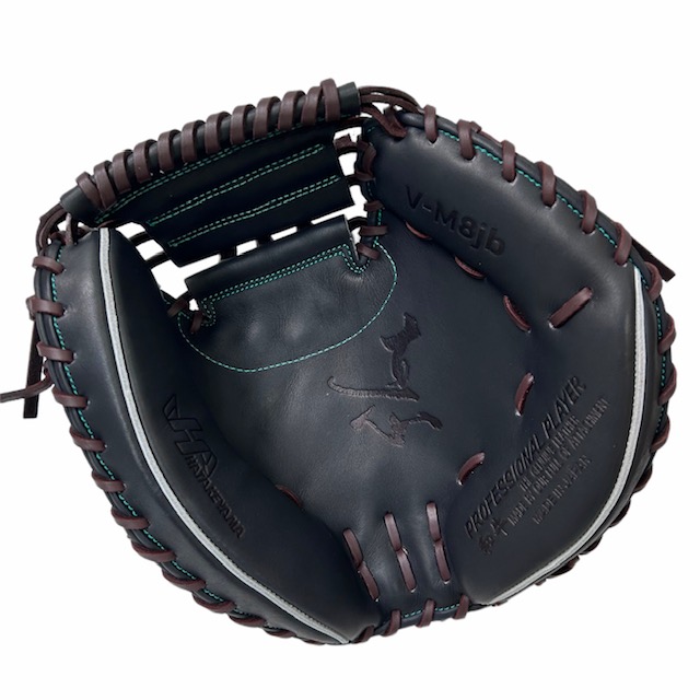 ハタケヤマ(HATAKEYAMA)硬式野球用キャッチャーミット 品番:V-M8JB カラー:Vブラック 左右:右投用 素材 表革:スペシャルジャパンハイド(和牛革) 裏革:共牛革 ポジション:捕手用 付属品:グラブ袋 原産国:日本