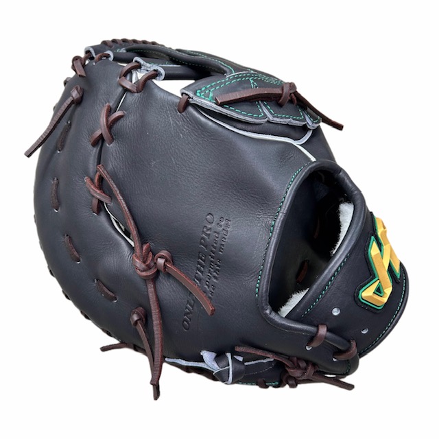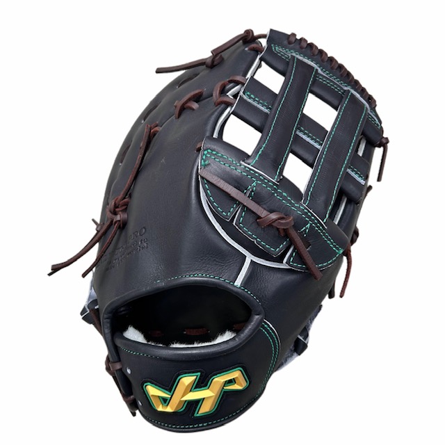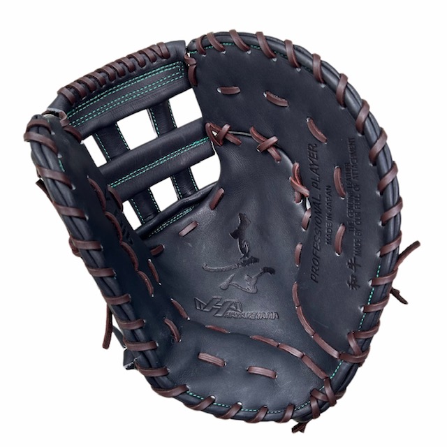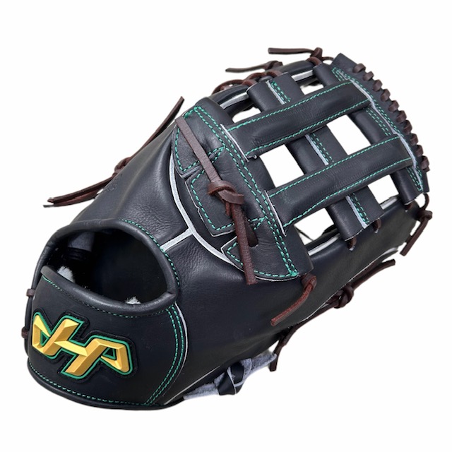 ハタケヤマ(HATAKEYAMA)硬式野球用ファーストミット 品番:V-F1JB カラー:Vブラック 左右:右投用 素材 表革:スペシャルジャパンハイド(和牛革) 裏革:共牛革 ポジション:一塁手用 付属品:グラブ袋 原産国:日本