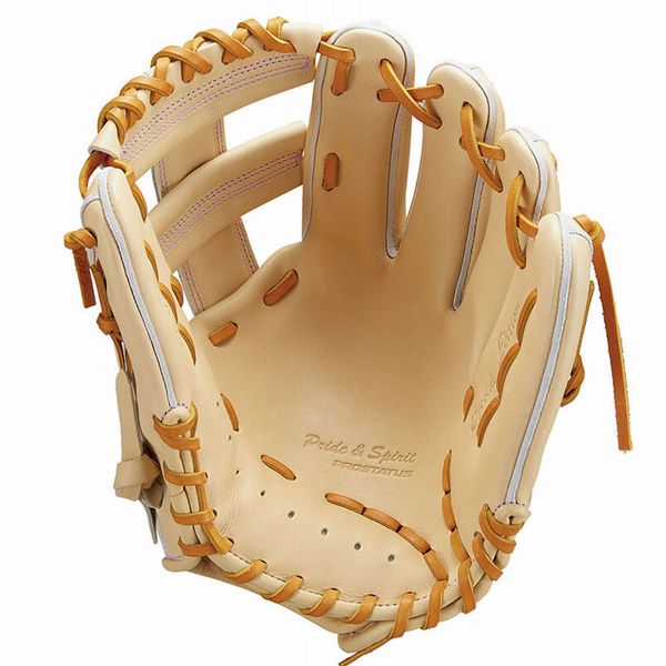きめ細かくしっとりとした上質なヨーロッパ産キップレザーに表平裏に当て革補強を施し捕球面の張りとしっかり感にこだわったプロステイタスSEシリーズ。 刺繍風ウェルダーラベル、バンド部ハミダシ、ブラウン色ムートンなどSEシリーズ特別仕様モデル。 堅実なプレーをサポートするNクロスWEB搭載、中村タイプ。