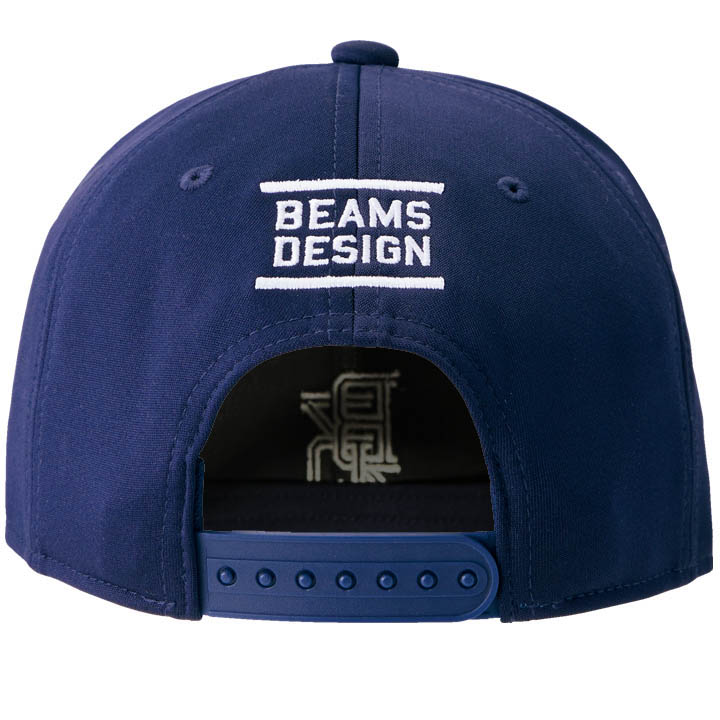 フロントパネルにBEAMS DESIGNロゴを立体刺繍で表現したフラットバイザーキャップ。
