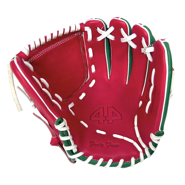 44(フォーティーフォー) 硬式軟式ソフトボール兼用グラブ 内野手用 品番:44-2023-CHRISTMAS カラー:クリスマスカラー GREEN×RED 素材:USステアレザー 左右:右投用 ポジション:内野手用