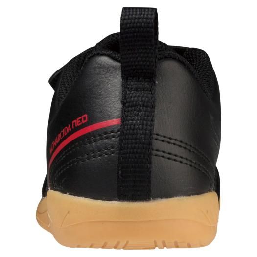 ミズノ(MIZUNO) サッカー ジュニア インドアシューズ モナルシーダNEO II CLUB KIDS IN 品番:P1GG222600 カラー:00:ブラック×ブラック サイズ:16.0、17.0、18.0、19.0、20.0、21.0cm 素材 甲材:人工皮革 底材:ゴム底 質量:約145g(19.0cm片方) インソール:取り外し可 シューズ幅:3E相当の方向け 原産国:カンボジア製