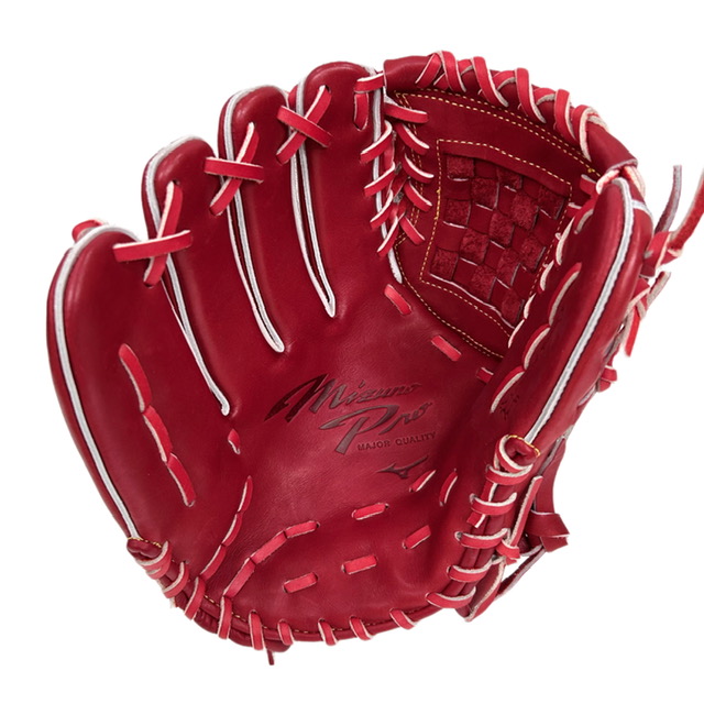 王道のコンセプト「フィット感」。 伝統と革新を想いで紡ぐコンセプトにミズノプロの歴史を込めたマーク。 グラブ製造工程に、「グラブラスト」という新たな製造技術を導入。 張り感と耐久性があり、形状についてくる馴染みやすさフィット感を実現した皮革。 皮革の中でパーツに一番適した部位で裁断する事で機能的に優れたグラブの製造が可能。
