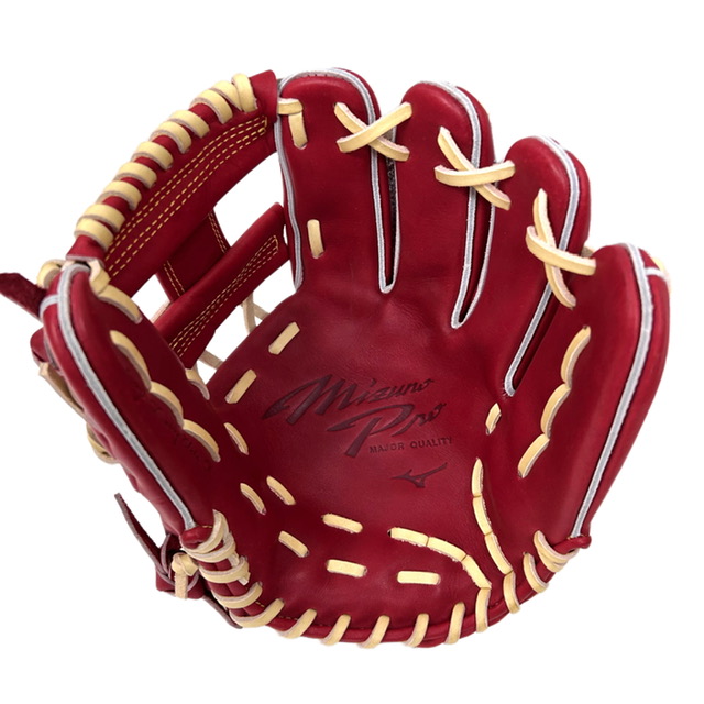 王道のコンセプト「フィット感」。 伝統と革新を想いで紡ぐコンセプトにミズノプロの歴史を込めたマーク。 グラブ製造工程に、「グラブラスト」という新たな製造技術を導入。 張り感と耐久性があり、形状についてくる馴染みやすさフィット感を実現した皮革。 皮革の中でパーツに一番適した部位で裁断する事で機能的に優れたグラブの製造が可能。