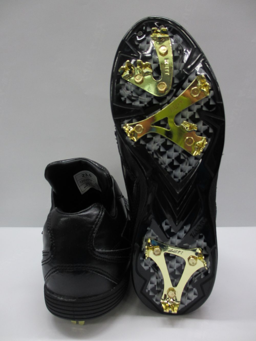 品番:BSR2222 カラー:1919 ブラック×ブラック サイズ:23.0cm〜29.0cm アッパー:人工皮革製(マイクロレザー) 補強:人工皮革製(マイクロレザー) アウトソール:合成樹脂製 ミッドソール : 熟成型EVAスポンジ スパイク:金属製 (BX616 タイプ) アッパースタイル:立ちベロ、レギュラーカット 付属品:ハンドル 生産国:中国製