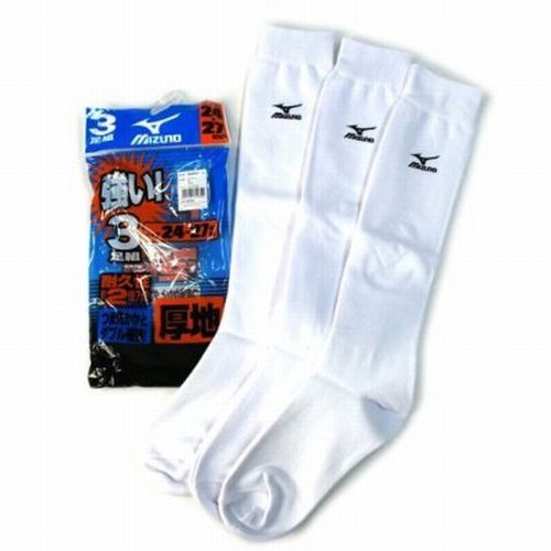 ミズノ アンダーストッキング3足組 品番:52UW03000 サイズ:24〜27cm 素材:ポリエステル・綿・その他 カラー:ホワイト(白) 転写でミズノランバードマークが入ります。 3足入りソックス