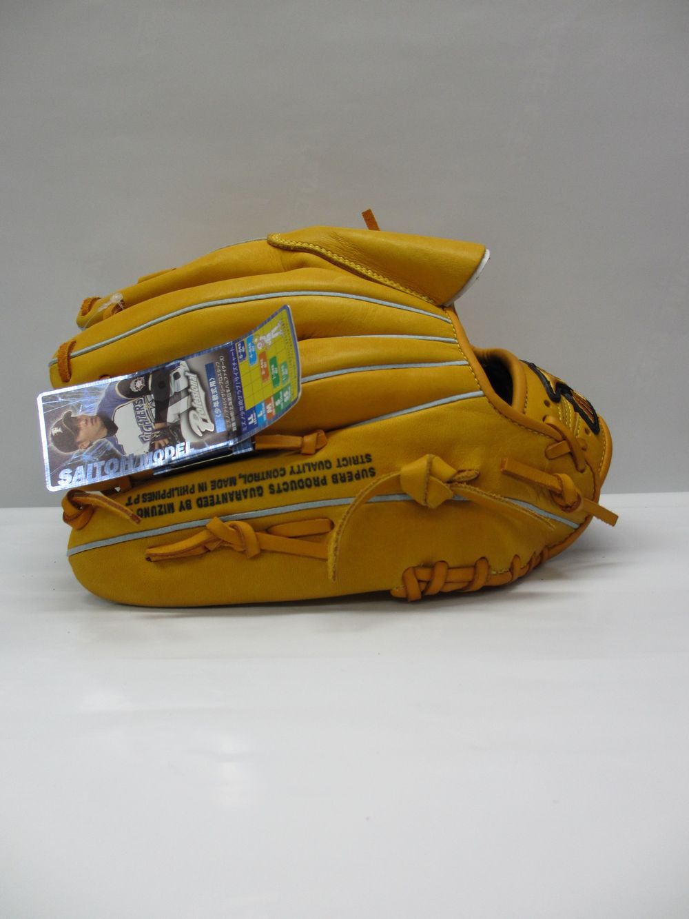 少年軟式野球用グラブ(グローブ) メーカー名:MIZUNO(ミズノ) 〈ビューリーグ〉プロフェッショナル 品番:2GY85561 カラー:ナチュラル(47) 左右:右投げ用 投手用 受球面/背面:ライティマックス(天然皮革:牛革) サイズ:L(145〜155cmの方におすすめ!) 斎藤モデル