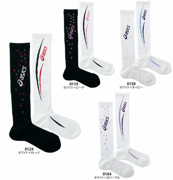 アシックス 2足組ハイソックス 表裏柄違い 品番:XWS713 カラー 0119 ホワイト×ピーチ 0124 ホワイト×Vレッド 0150 ホワイト×ネイビー 0164 ホワイト×Dパープル