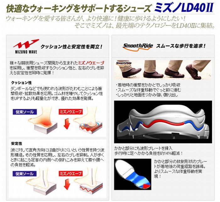 ミズノウォーキングシューズ LD40II 品番:5KF04058 カラー:58 ダークブラウン サイズ:24.0〜28.0cm(幅/3E)