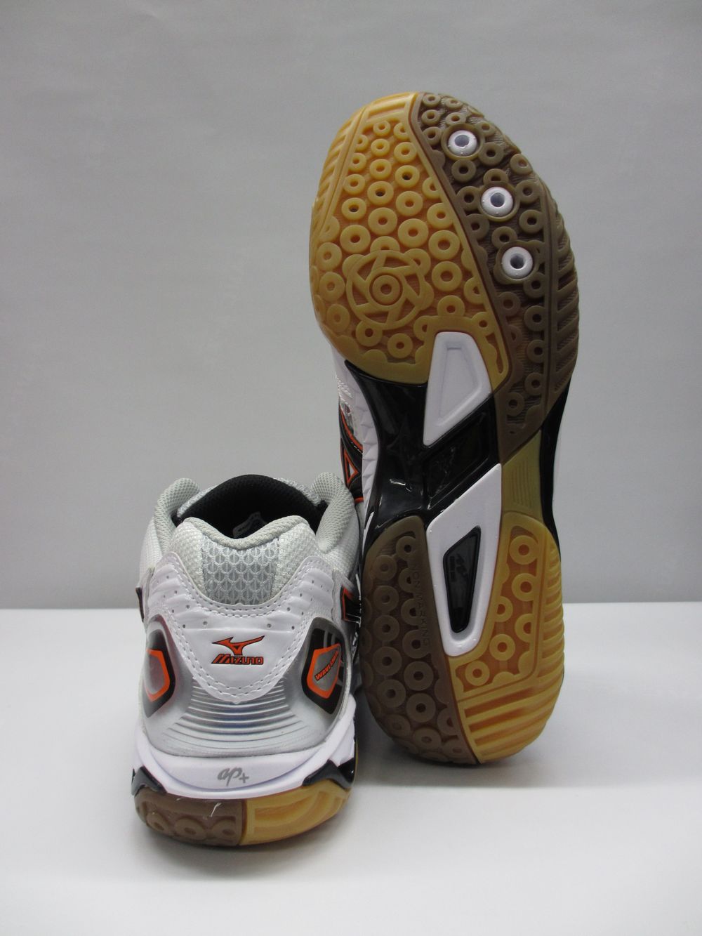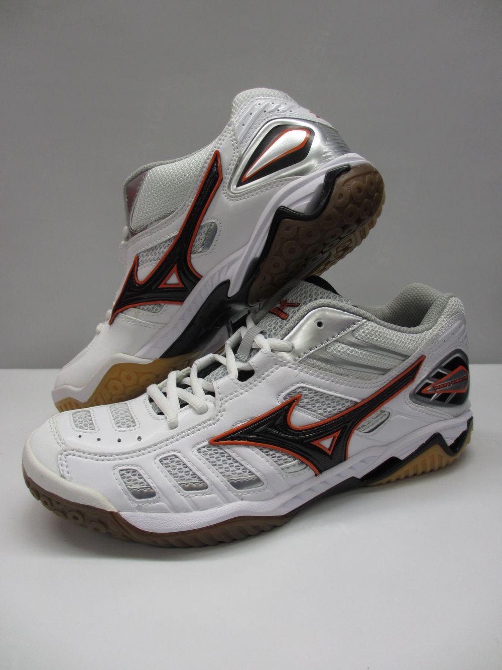 ミズノ バドミントンシューズ ウェーブ スマッシュ CL フィット(WAVE SMASH CL FIT) 品番:7KM13054 カラー:54 ホワイト×オレンジ サイズ:23.0〜28.0cm(幅/2E)