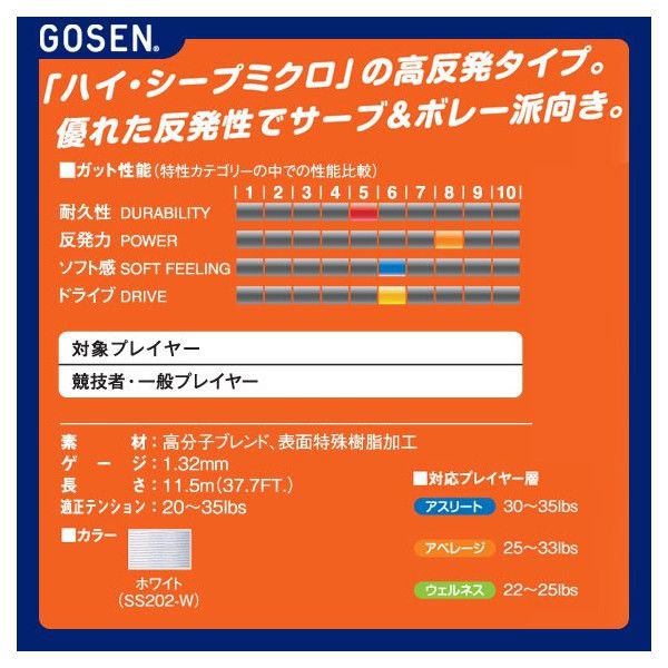 ガットのタイプ: 高分子ブレンド、表面特殊樹脂加工