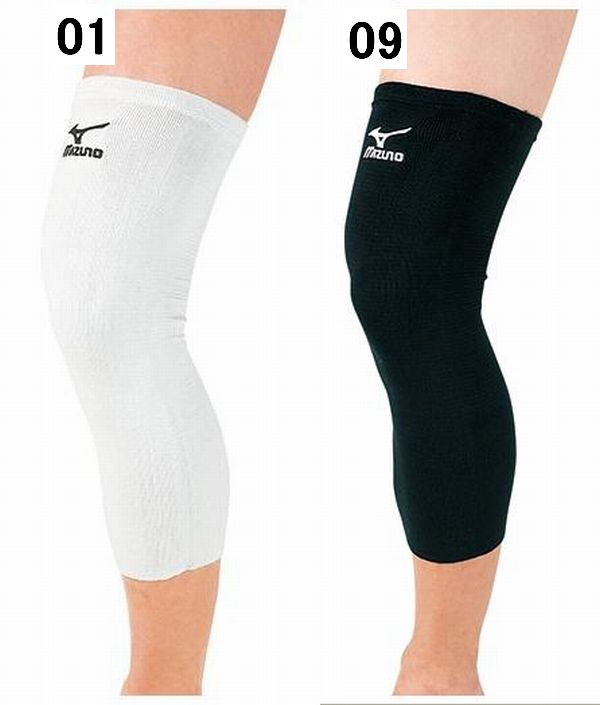 ミズノ 膝サポーター(ロング) 品番:59SS904 カラー:01 ホワイト、09 ブラック サイズ:フリー[総丈:42cm]