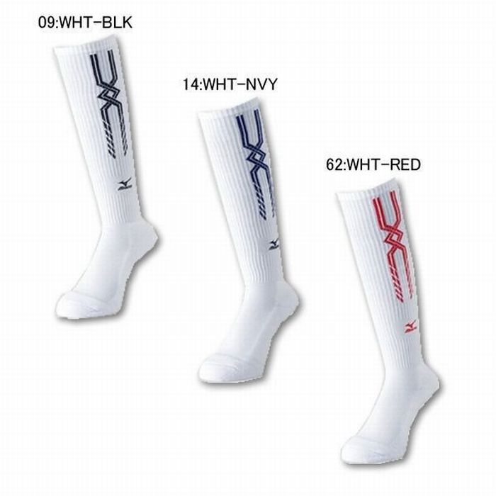ミズノ ソックス 品番:59UF905 カラー 09 ホワイト×ブラック 14 ホワイト×ネイビー 62 ホワイト×レッド