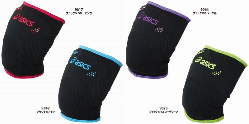 アシックス ニーサポーター 品番:XWP056 カラー 9017 ブラック×ベリーピンク 9047 ブラック×アクア 9064 ブラック×Dパープル 9073 ブラック×イエローグリーン